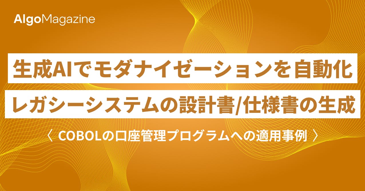 本記事では、レガシーシステムの刷新における主な課題を解説しつつ、その解決策となる「生成AI」を使ったモダナイゼーションの自動化を紹介します。さらに、AIによるコード解析とドキュメント作成のデモ事例として、COBOLで書かれた口座管理プログラムのコードを解析し、設計書・仕様書を自動で生成する流れをお見せします。