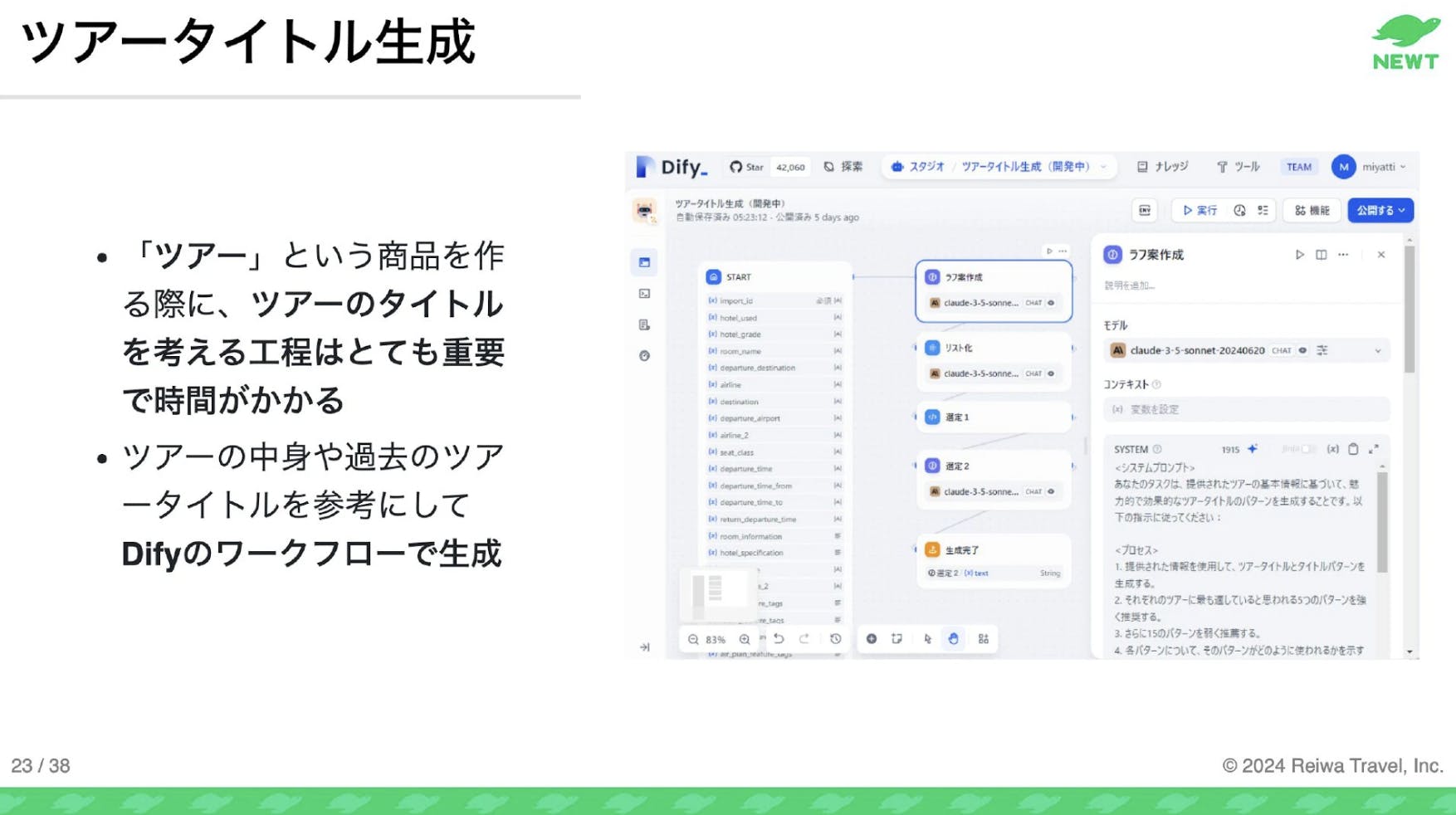 - 過去のツアータイトルに関する実績データを活用したAIワークフローを導入