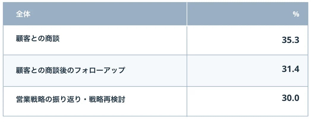 また、同調査では、多くの営業担当者が「より多くの時間を顧客との商談や商談後のフォローアップ、営業戦略の振り返りに割きたい」と回答しており、営業活動に集中できる環境の整備が求められています。
