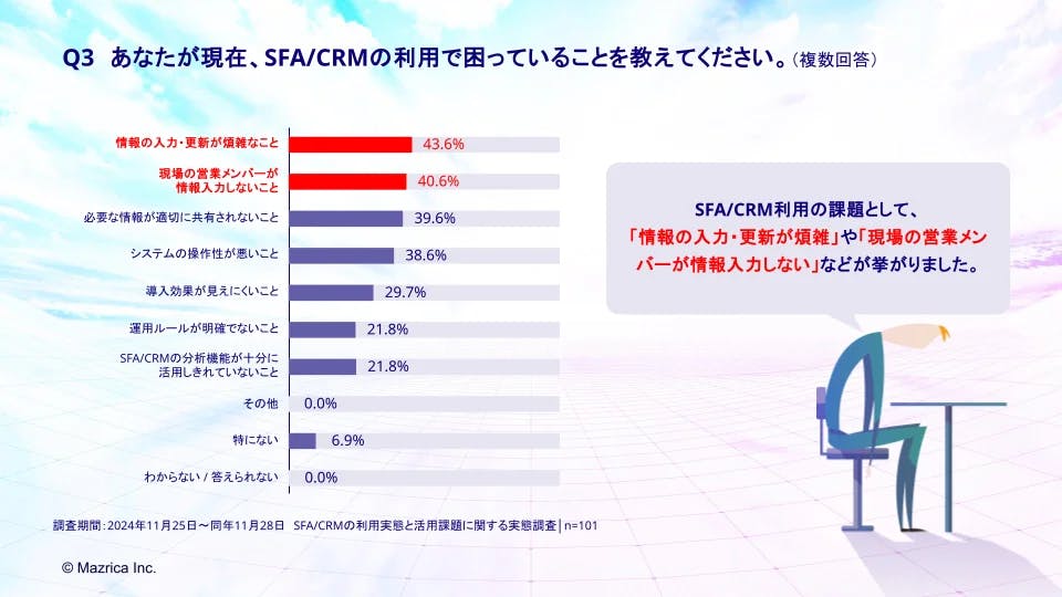 株式会社マツリカによる、「SFA/CRMの利用実態と活用課題に関する実態調査」から抜粋