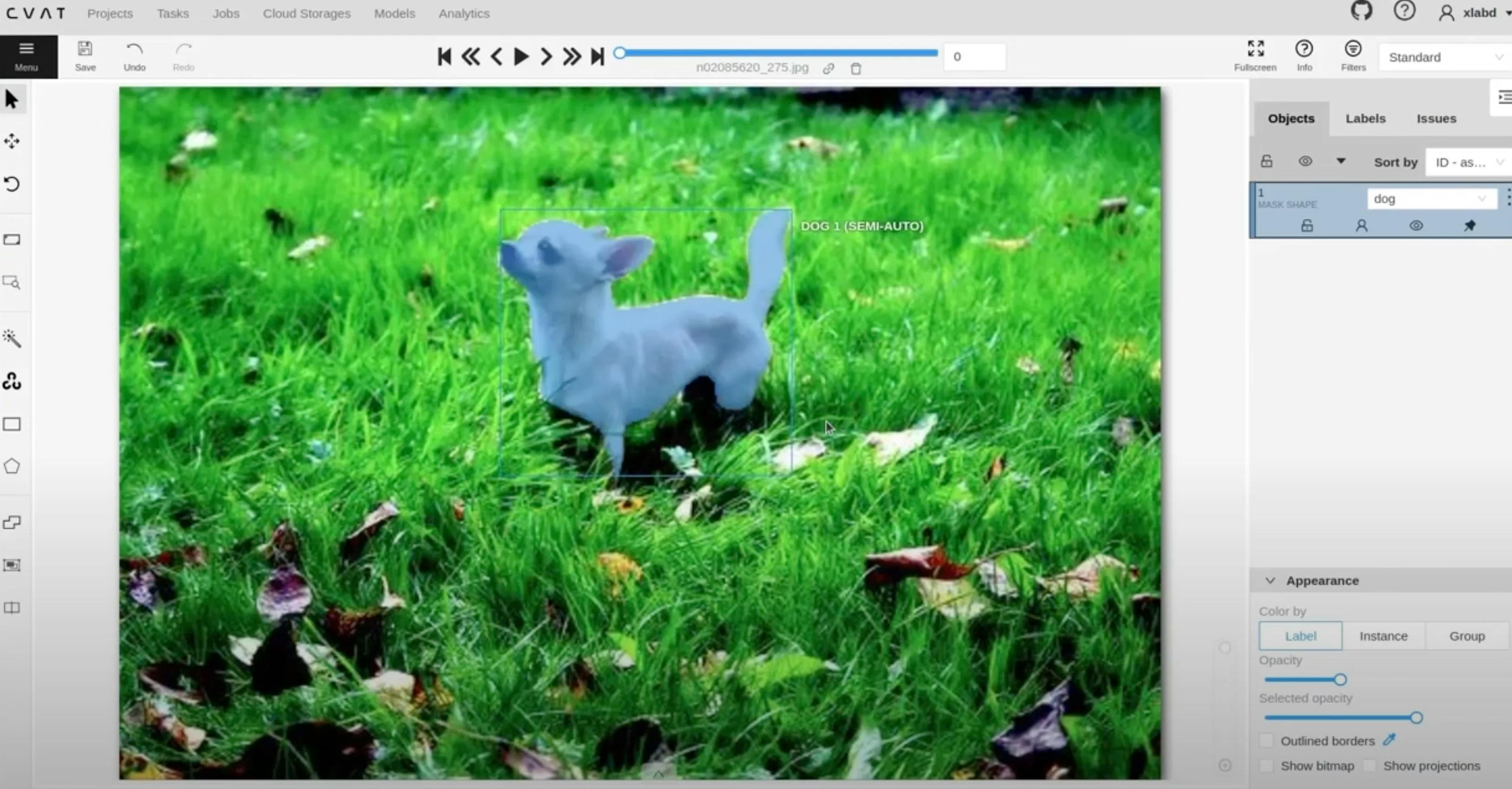 2.犬を選択すると犬のみがセグメンテーションされる