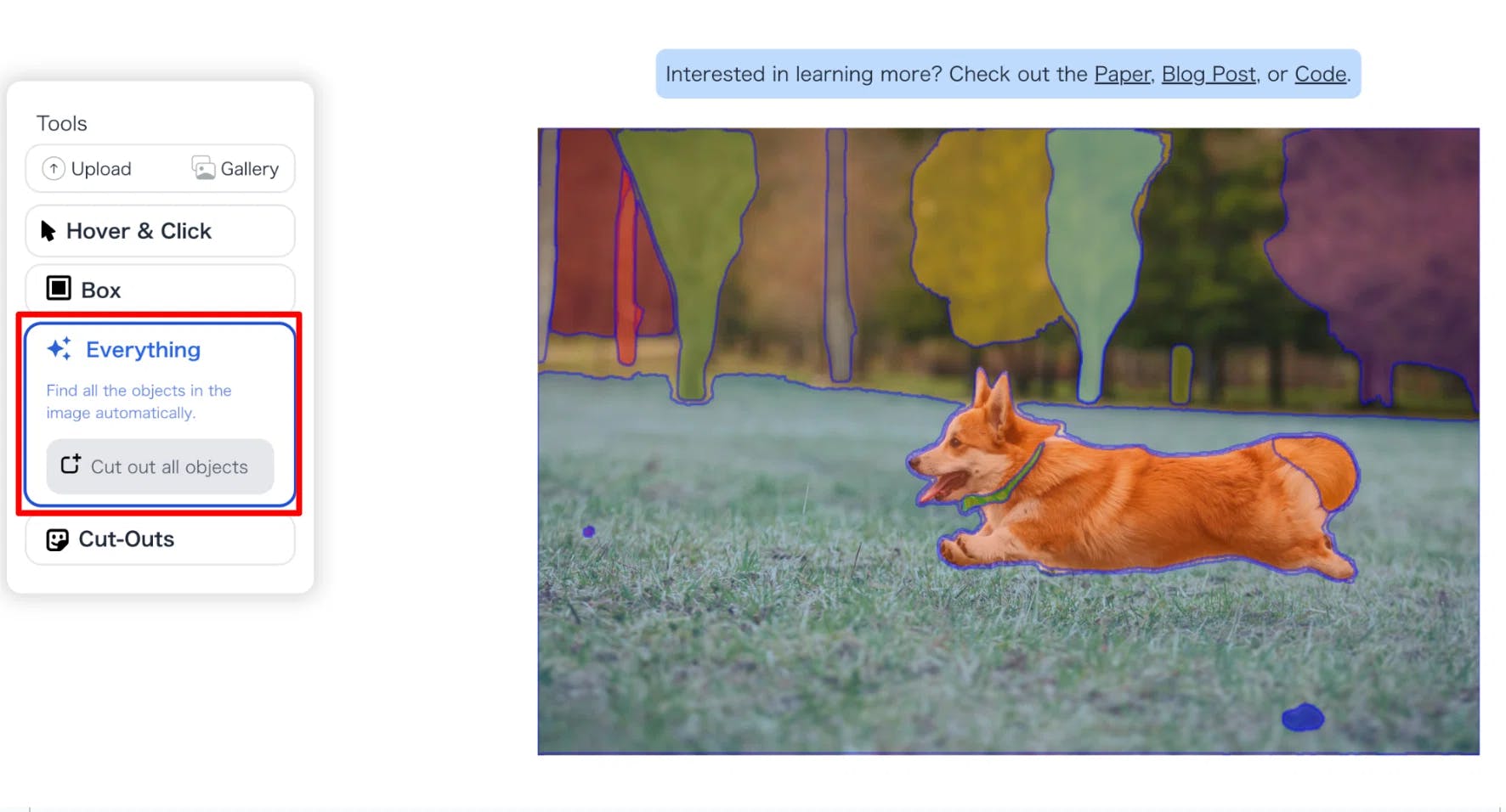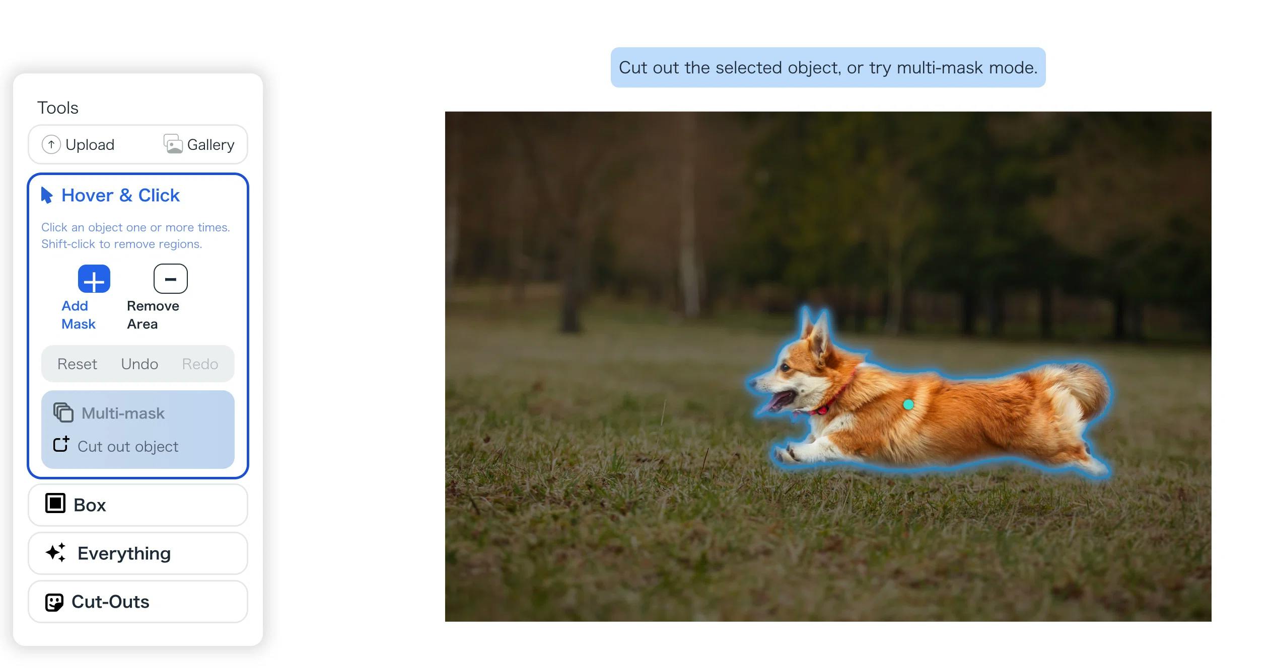 画像上の点や四角形を指定するだけで、物体の輪郭を自動的に抽出できます。これにより、ユーザーは以前のモデルよりも簡単かつ効率的に画像内の物体を識別できるようになりました。